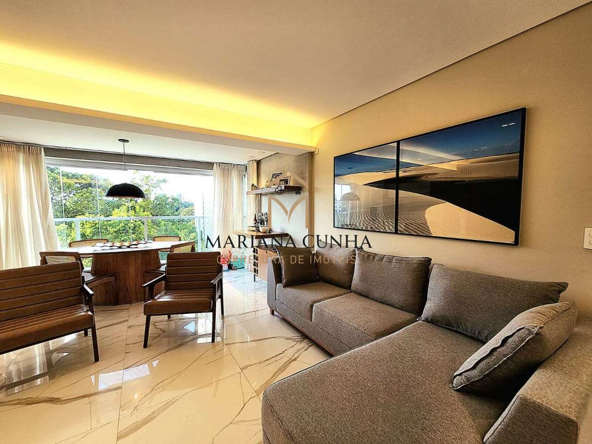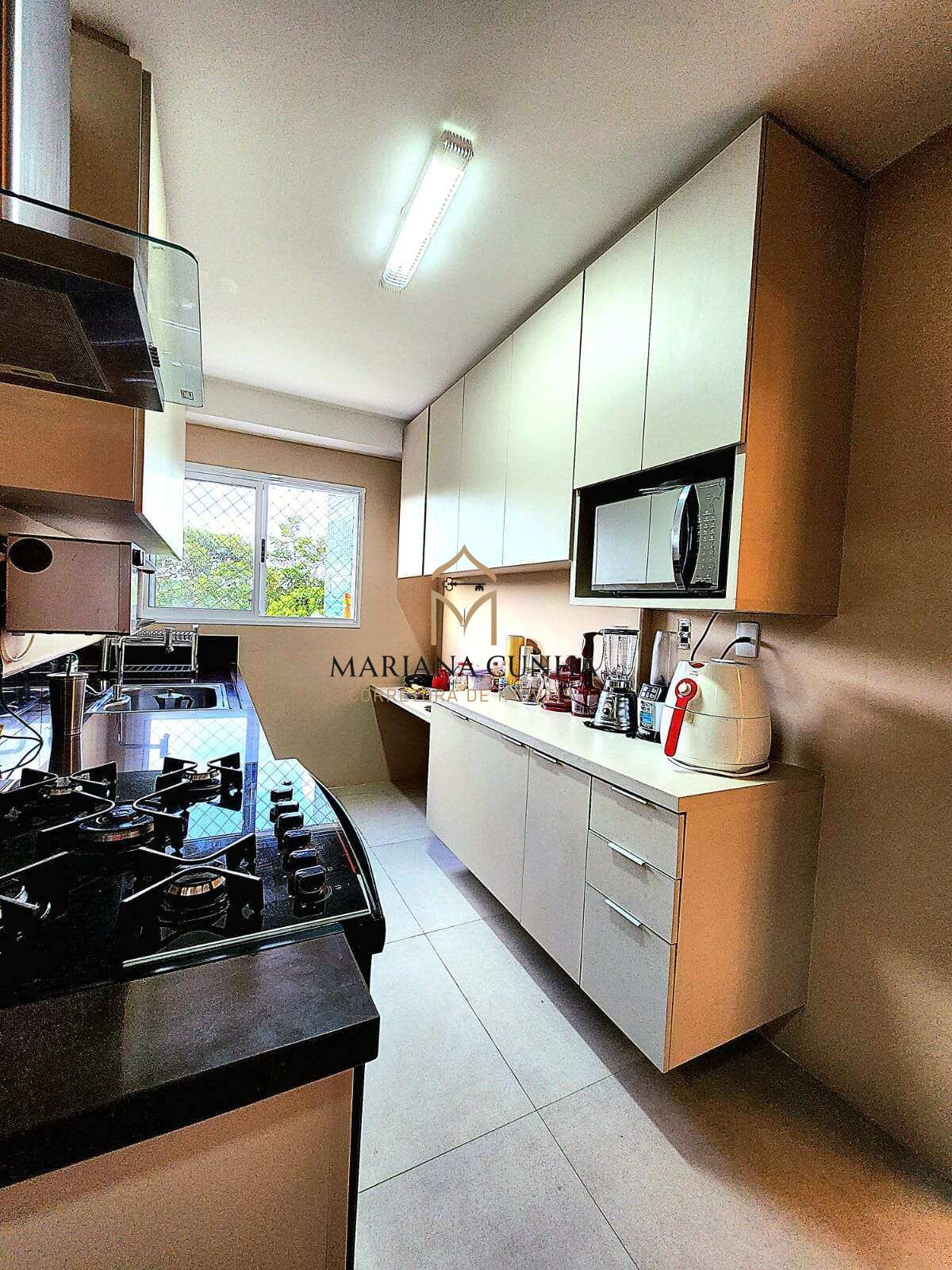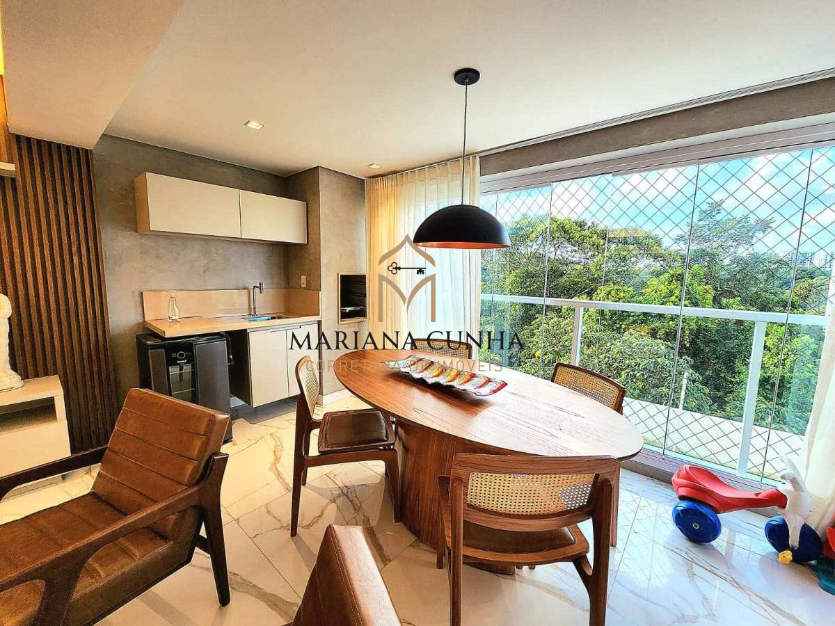 116m2, 3/4, nascente, andar baixo, com varanda integrada a sala, e com churrasqueira a carvão, 2 vagas de garagem, armários planejados em todos os ambientes, porcelanato, teto rebaixado em gesso, iluminação planejada, fechamento da varanda com cortina de vidro.