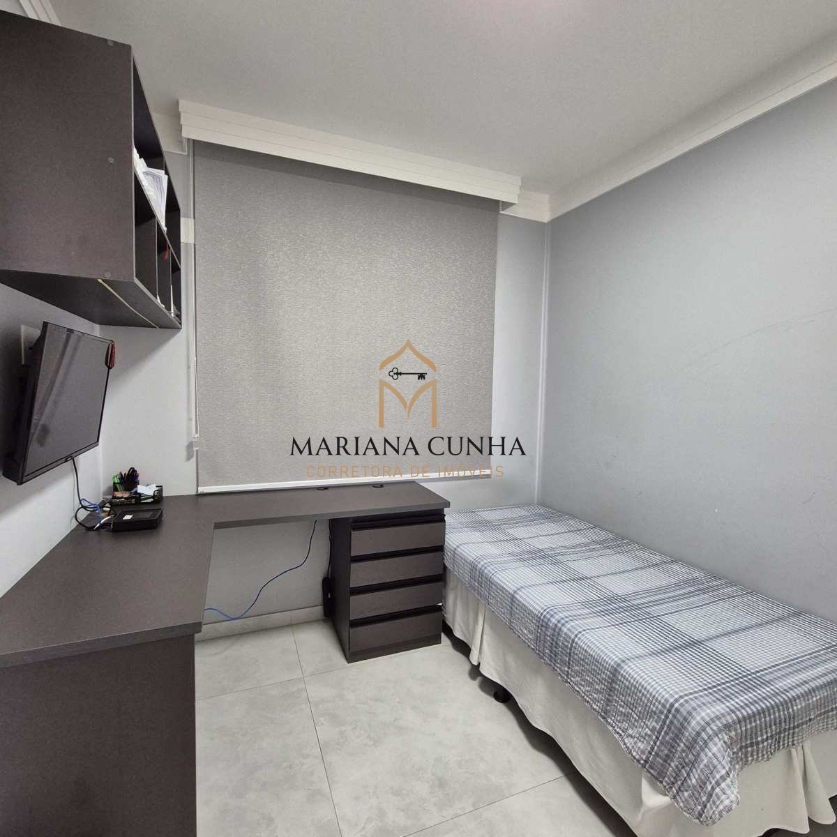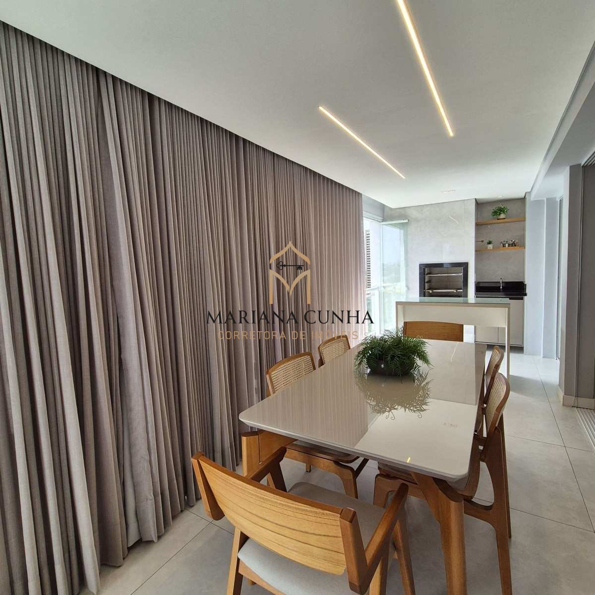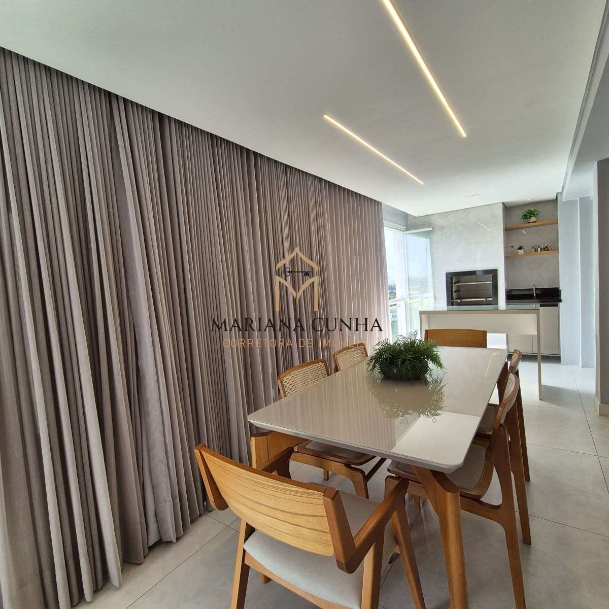 Apartamento clássico e elegante com piso porcelanato, com gesso e iluminação planejada.