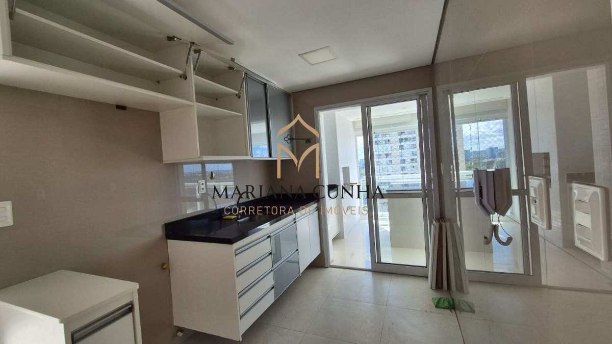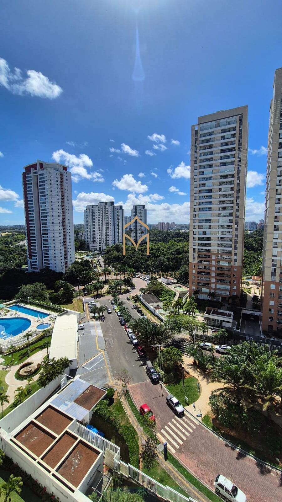 3 quartos sendo 1 suite, lavabo, banheiro social, dependência de serviço completa, 2 vagas de garagem, depósito, vista para o Greenville.